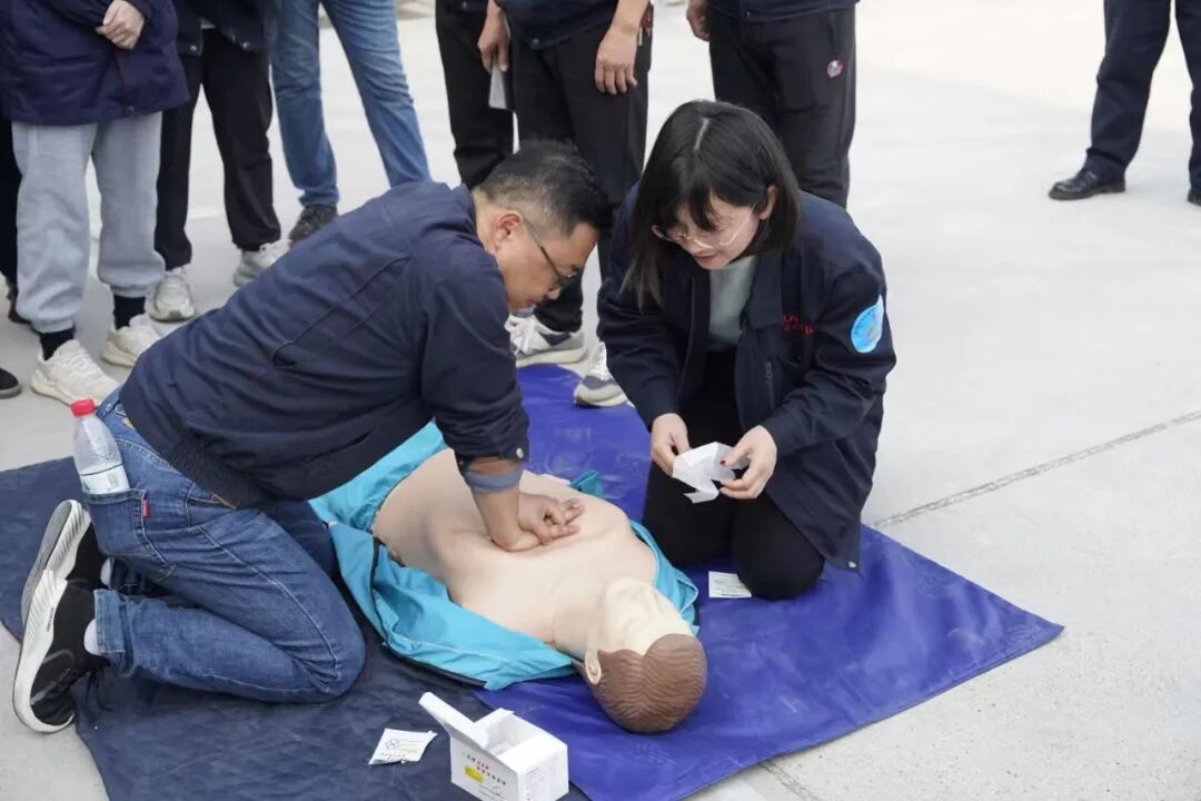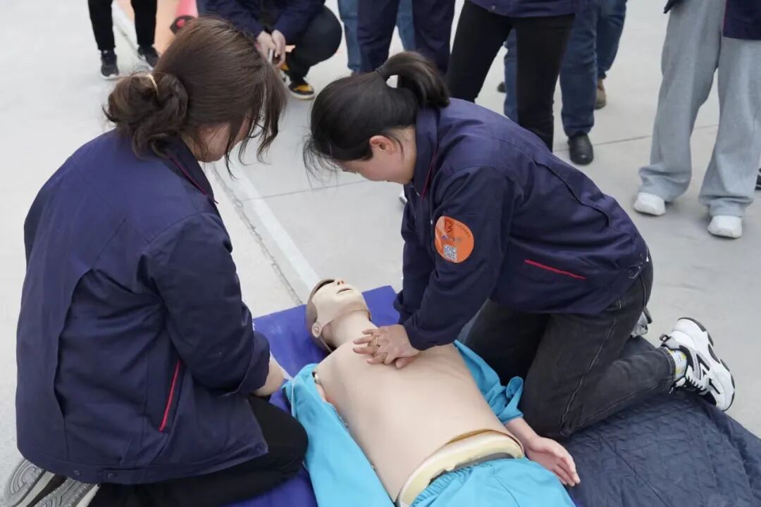实操技能考核中,CPR、双人急救搬运、干粉灭火、双人消防水带连接,大家纷纷积极参与其中。